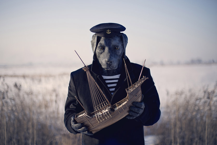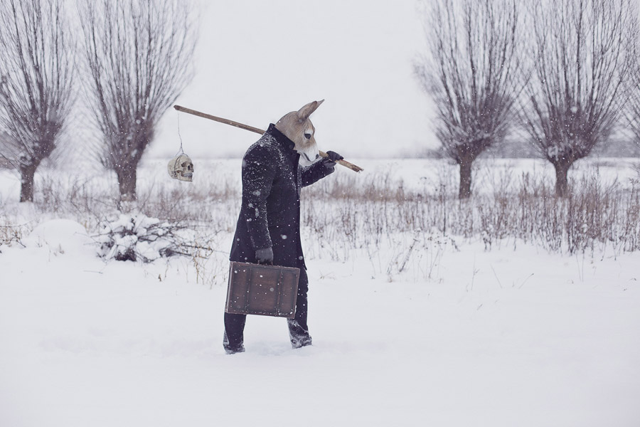 Telling stories is a part of our fine art photography project based on surrealistic imagery. Our new series titled “My Heart is An Animal” brings elaborate compositions combining human and animal elements. We employ animal characters in human settings, often in a social and spiritual context, because each creature brings to life beautiful and original symbolism and emotional values. We are all connected, people, animals, nature…as a one living organism. In every human being there is a piece of animal instincts and in every animal there is a piece of human being: soul, feelings, emotions, fragility. Animals show human emotions.