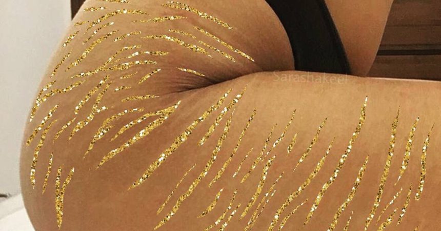 “I still remember that feeling of making those glitter stretch marks, and I was quite scared of uploading it. I am a Pakistani-based artist and talking about stretch marks or even making art out of it is not something you talk about on a regular basis.”